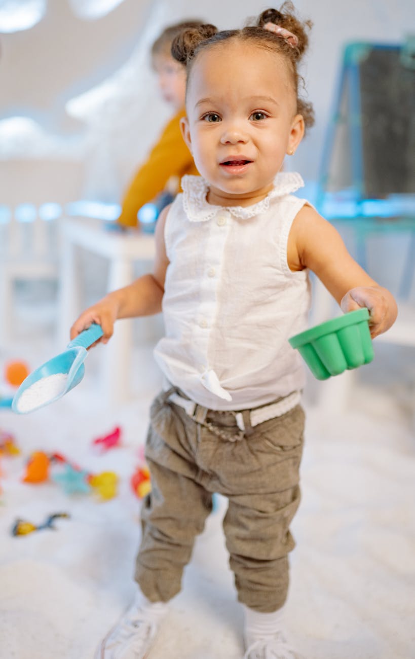 To get some snow day cold, you can grab some ice cubes, put them in a shallow pan, and provide some spoons and small cups. Kiddo can scoop and explore the melting ice. We highly recommend putting this in the bathtub or over a bath towel to save on mess cleanup!